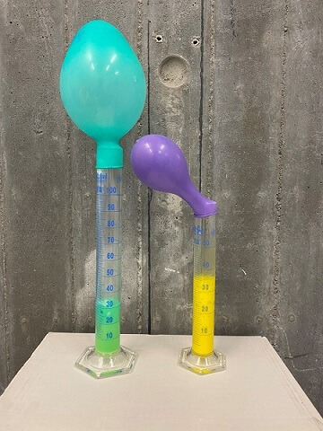 Bu deney, iki veya daha fazla maddenin birbiri ile etkileşmesi sonucu kimyasal tepkime ile nasıl yeni özellikte maddeler oluşturduğunu gözlemlememizi sağlıyor. Tüm cam şişe/pet şişe veya ağzını balon ile kapatabileceğiniz bir kabın içine yarım çay bardağı sirke ve hamur kabartma tozu koyup şişenin ağzına bir balon geçirerek kapatın. Sirke ve kabartma tozu tepkimeye girdiği zaman karbondioksit gazı açığa çıkarır. Gaz, şişe içinde kendine daha fazla yer bulamayınca püskürme meydana gelir. Bu püskürme sonucunda şişe ağzına tutturulmuş balon şişmeye başlar. Aynı deney kabartma tozu yerine karbonat kullanılarak da yapılabilir. Kabartma tozu ve karbonat sirke ile farklı zaman ve hızda etkileştiği (tepkimeye girdiği) için şişen balonların şişme süresi ve boyutları farklı olacaktır.