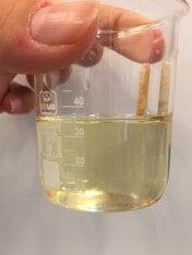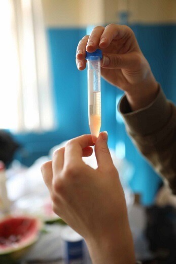 Kavanozun kapağını kapatıp sıvının üst kısımlarında beyaz renkte bir bulut oluşana kadar bekleyin. Bu bulut meyvenin DNA’sını göstermektedir. Deneyde meyve çekirdeği tuz ile şişmekte, deterjan hücre duvarının parçalanmasını sağlamakta ve sıvıya karışan DNA alkol ile görülebilir hale gelmektedir.