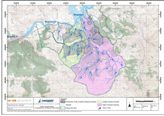 Çöpler altın madeni sahası drenaj sistemi (ÇED Raporundan).