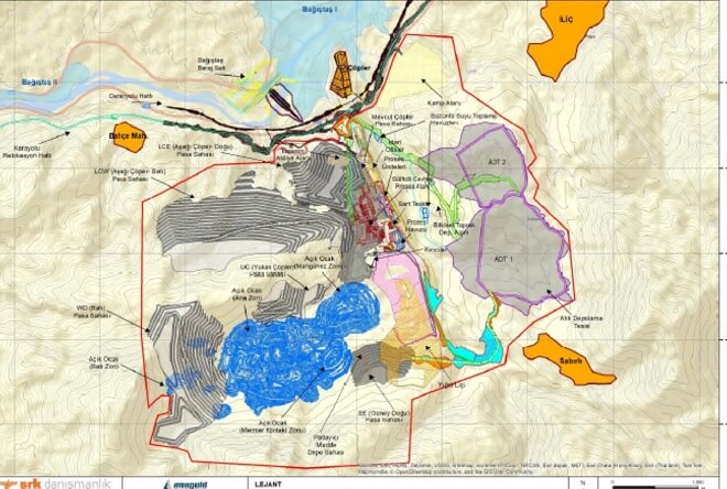 Çöpler altın madeni sahası ve yerleşim yerleri (ÇED Raporu’ndan).