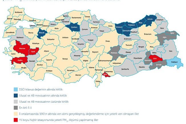 Havayı kirleten en önemli maddelerden partikül madde PM10 değerlerine bakıldığında, 2021’de en kirli havayı soluyan ilk beş il sırasıyla, Batman, Iğdır, Ağrı, Şırnak ve Malatya oldu. Bu illerde yıllık ortalamalar, Dünya Sağlık Örgütü’nün (DSÖ) partikül madde PM10 için belirlediği 15 μg/m3 olan kılavuz değerin 5-8 katıydı. 200 günden fazla günde ise PM10 için yönetmelikte belirlenen 40 μg/m3 ulusal limit değerinin üstünde hava kirliliği ölçüldü. Batman’da 2021 yılındaki hava kirliliği, DSÖ’nün kılavuz değerinin yedi katından fazlaydı. Ulusal mevzuattaki yıllık ortalamanın ise yaklaşık üç katıydı. Şehirde yaşayanlar, tam 326 gün boyunca kirli havaya maruz kaldı. 2019 yılında yayınlanan Batman Temiz Hava Eylem Planı’na göre, hava kirliliğinin ana nedeni, il merkezinde bulunan petrol rafinerisi. Böyle bir tespit olmasına karşın 2020-2024 yıllarını kapsayan planda, rafineriye yönelik önlemlerden bahsedilmiyor. Iğdır son altı yıldır, en kirli iller arasında en üst sıralarda. Konutlarda yakılan kömürün yol açtığı hava kirliliğine ek olarak bir diğer önemli kirlilik nedeni, ilin üç ülkeye sınırı olmasından kaynaklanan yoğun uluslararası karayolu trafiği ve mal taşımacılığı. Iğdır’ın yanı sıra Kahramanmaraş da son beş yılda yayınlanan Kara Raporlar’da, en kirli iller sıralamasında her yıl listede. Hakkari ise DSÖ standartlarına göre PM10 kirliliği olmayan tek il. Ancak Hakkarililer kükürt dioksit açısından çok kirli bir hava soluyor.