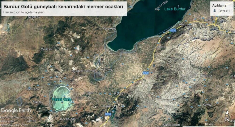 Yazıda, Burdur-Karamanlı-Yeşilova arasında ve Yarışlı Gölü çevresindeki mermer ocaklarının giderek yöreyi nasıl çölleştirdiğinden bahsedeceğim.