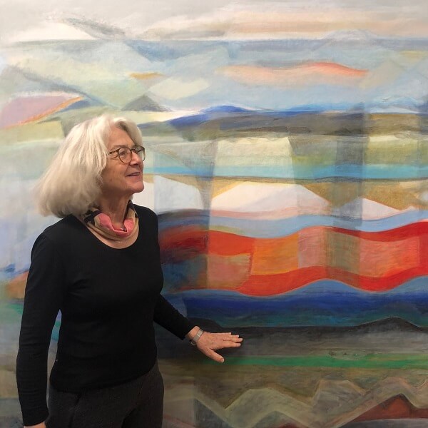 Renk benim için her şeydir” diyen Ursula Soltermann Katipoğlu, sanatsal dilinin tuvale aktarımında her zaman için öncelikle renklerle düşünüp, sonrasında renklerin uyum ahenk ve zıtlığını, açık koyu dengelerini kurup formlarını ona göre yerleştirdiğini belirtiyor. Kendini bir anlamda peyzaj ressamı olarak adlandıran sanatçı, eserlerinin çoğunun soyut ve somut arasında ince bir çizgide dururken daha çok soyut olarak adlandırabileceğini söylüyor. Bu sergisinde İstanbul’da ve Türkiye’de yaşadığı otuz yılı aşan zaman diliminden ve özellikle son dört yılda eşi ressam Yusuf Katipoğlu’nu kaybedip pandemiyi yaşadıktan sonra, içindekileri akıtarak yaşama bağlanmasının, umut etmesinin göstergesi olarak, yumuşak bir dalga formunda karşımıza çıkan kırmızı bantı yoğunlukla kullandığını belirtiyor. Sanatçı, umudun göstergesi olarak kullandığı ‘Kırmızı Bant’ı adeta umut simgesine dönüştürüyor.